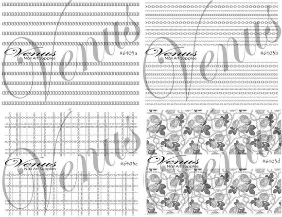 Nail Art Water Transfer Decals - Silver Chains SET OF 4 FULL IMAGES (Clear) - #6403