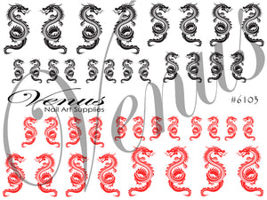 Nail Art Water Transfer Decals - Dragons Black + Red (Clear) #6103
