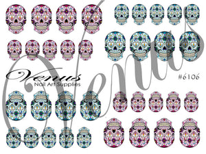 Nail Art Water Transfer Decals - Sugar Skulls Pink/Blue (Clear) #6106