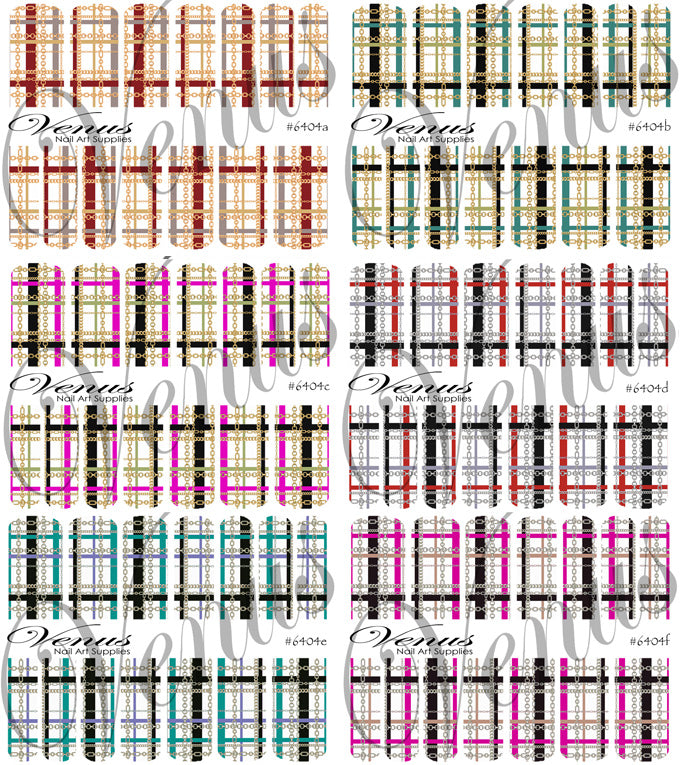 Nail Art Water Transfer Decals - Plaid Chains SET OF 6 (Clear/White) #6404