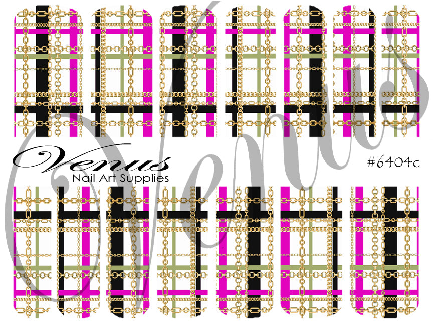 Nail Art Water Transfer Decals - Plaid Chains: Pink/Gold (Clear/White) #6404c