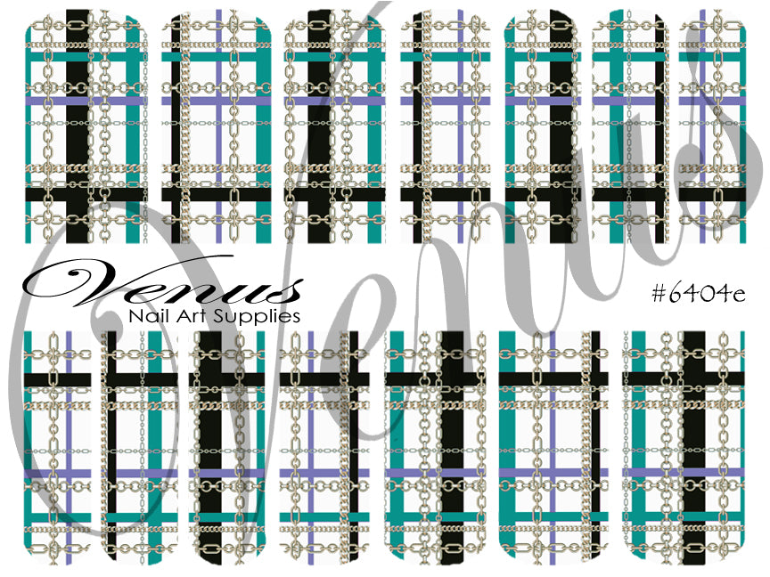 Nail Art Water Transfer Decals - Plaid Chains: Teal/Silver (Clear/White) #6404e