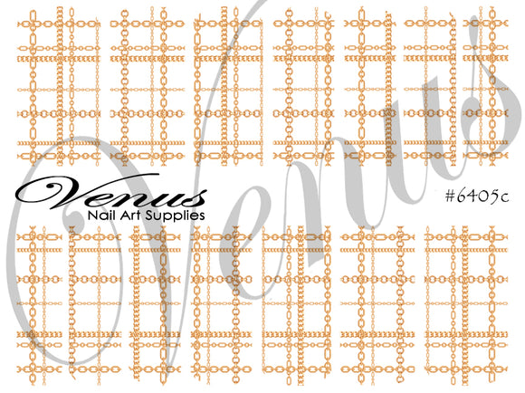 Nail Art Water Transfer Decals - Chains: Gold Plaid (Clear/White) #6405c