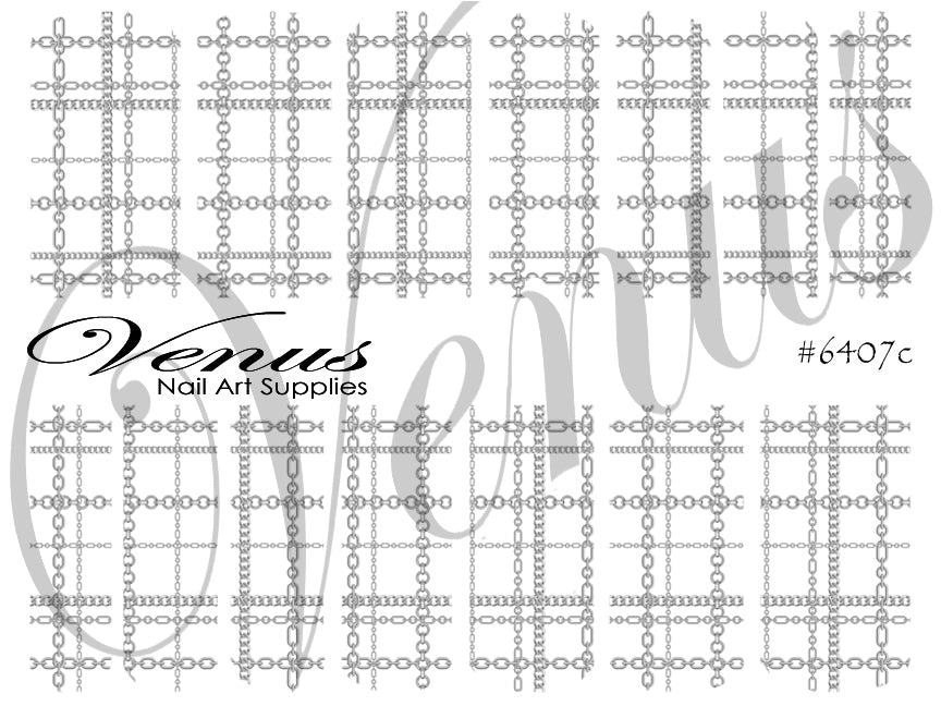 Nail Art Water Transfer Decals - Silver Chains: SET OF 4 (Clear/White) #6407