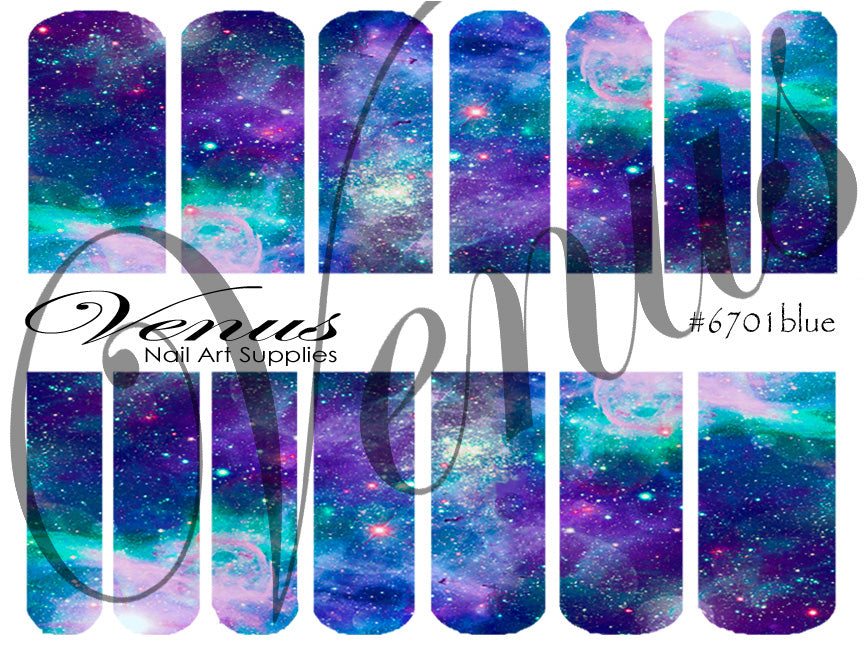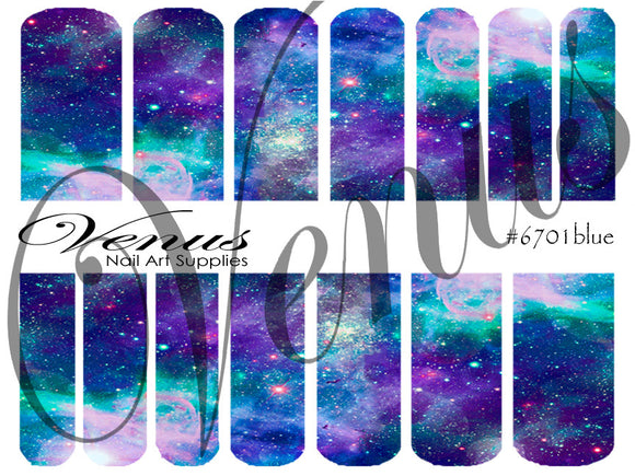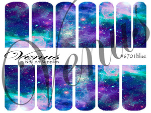 Nail Art Water Transfer Decals - Galaxy - Blue (Clear/White) - #6701