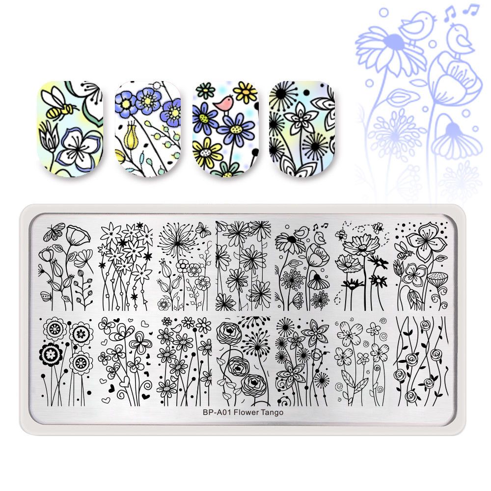BORN PRETTY Nail Art Stamping Plate - FLOWER TANGO BP-A01 | Venus Nail Art Supplies Australia