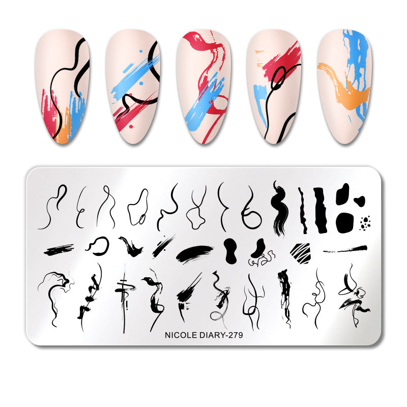 NICOLE DIARY Designer Stamping Plate - 279 Smudges & Lines | Venus Nail Art Supplies Australia