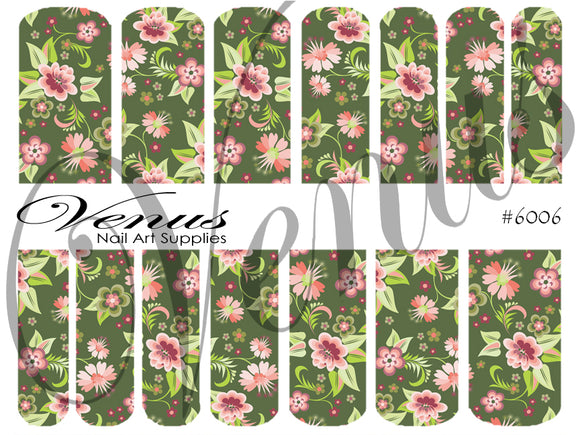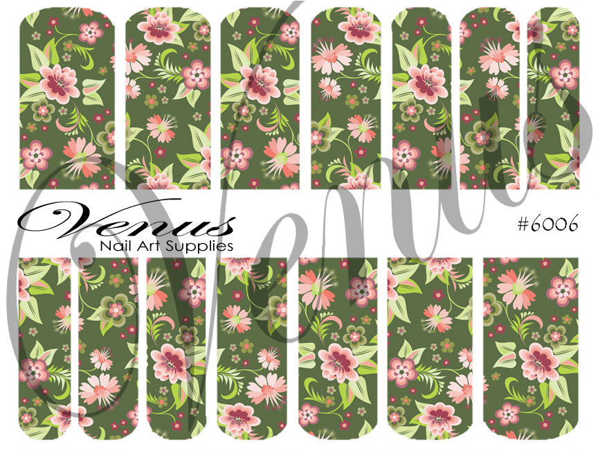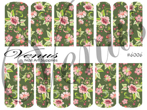 Nail Art Water Transfer Decals = Olive Grove (Clear/White) #6006