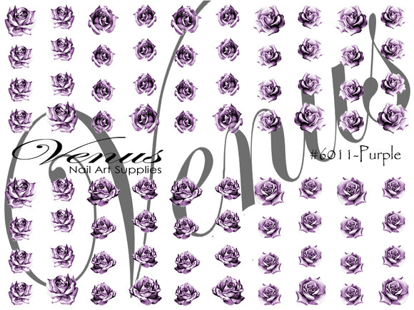 Nail Art Water Transfer Decals - Purple Rose Tattoo (Clear) #6011
