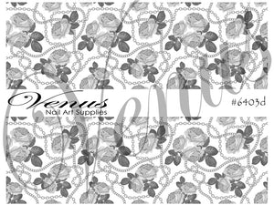 Nail Art Water Transfer Decals - Chains: Silver Roses FULL IMAGE (Clear) #6403d