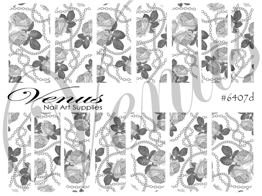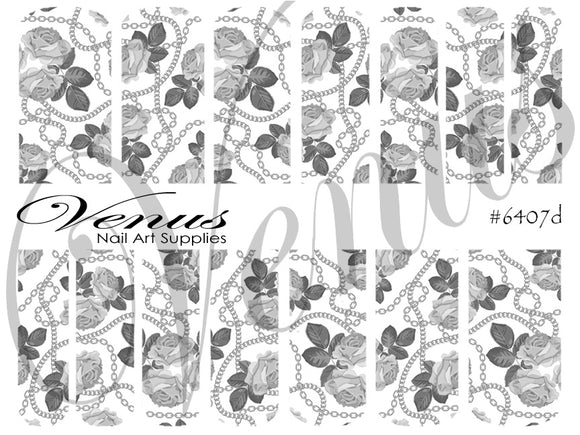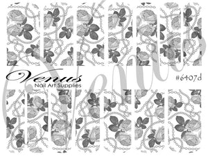 Nail Art Water Transfer Decals - Chains: Silver Roses (Clear/White) #6407d