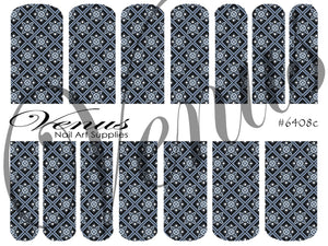 Nail Art Water Transfer Decals = Blue/Black (Clear/White) #6408c