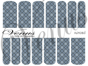 Nail Art Water Transfer Decals - Blue (Clear/White) #6408d