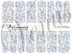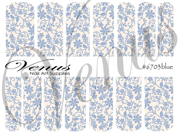 Nail Art Water Transfer Decals - Floral Lace - Blue (Clear/White) - #6703