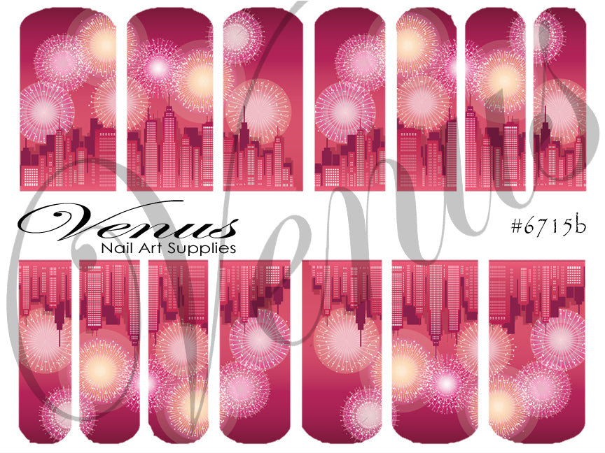 NYE FIREWORKS - Pink (Clear/White) - Water Transfer Decals #6715b
