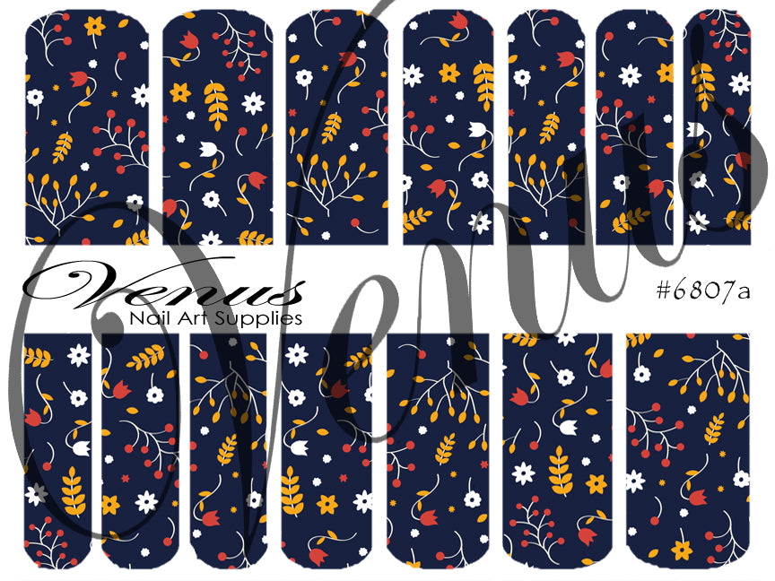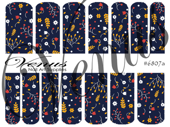 AUTUMN FLORAL - Navy (Clear/White) - Water Transfer Decals #6807a