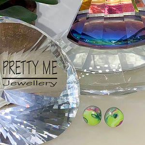 This set of earrings is handmade from scratch with polymer clay and has a glassy resin finish. Studs are the smallest in our earring collections (approx. 10mm-12mm).