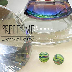 This set of earrings is handmade from scratch with polymer clay and has a glassy resin finish. Studs are the smallest in our earring collections (approx. 10mm-12mm).
