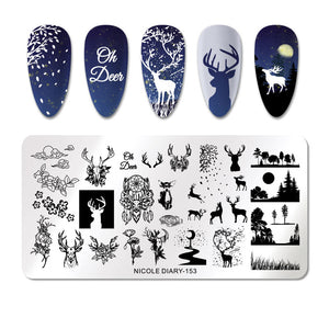 NICOLE DIARY Nail Art Stamping Plate - 153 (Oh Deer) | Venus Nail Art Supplies Australia