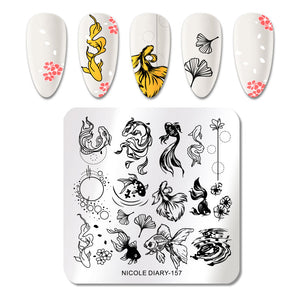 NICOLE DIARY Nail Art Stamping Plate - 157 Fish in a Pond | Venus Nail Art Supplies Australia